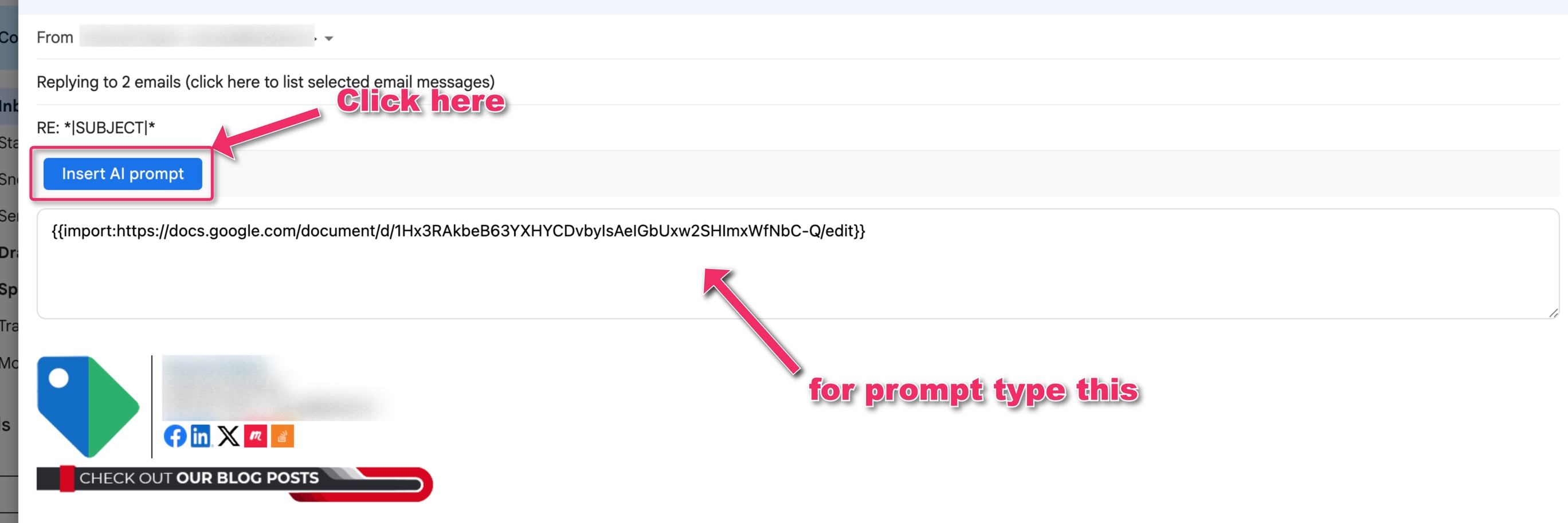 - Create a Google Docs document with your prompt. Check out this sample document: Example reply to email prompt for support note