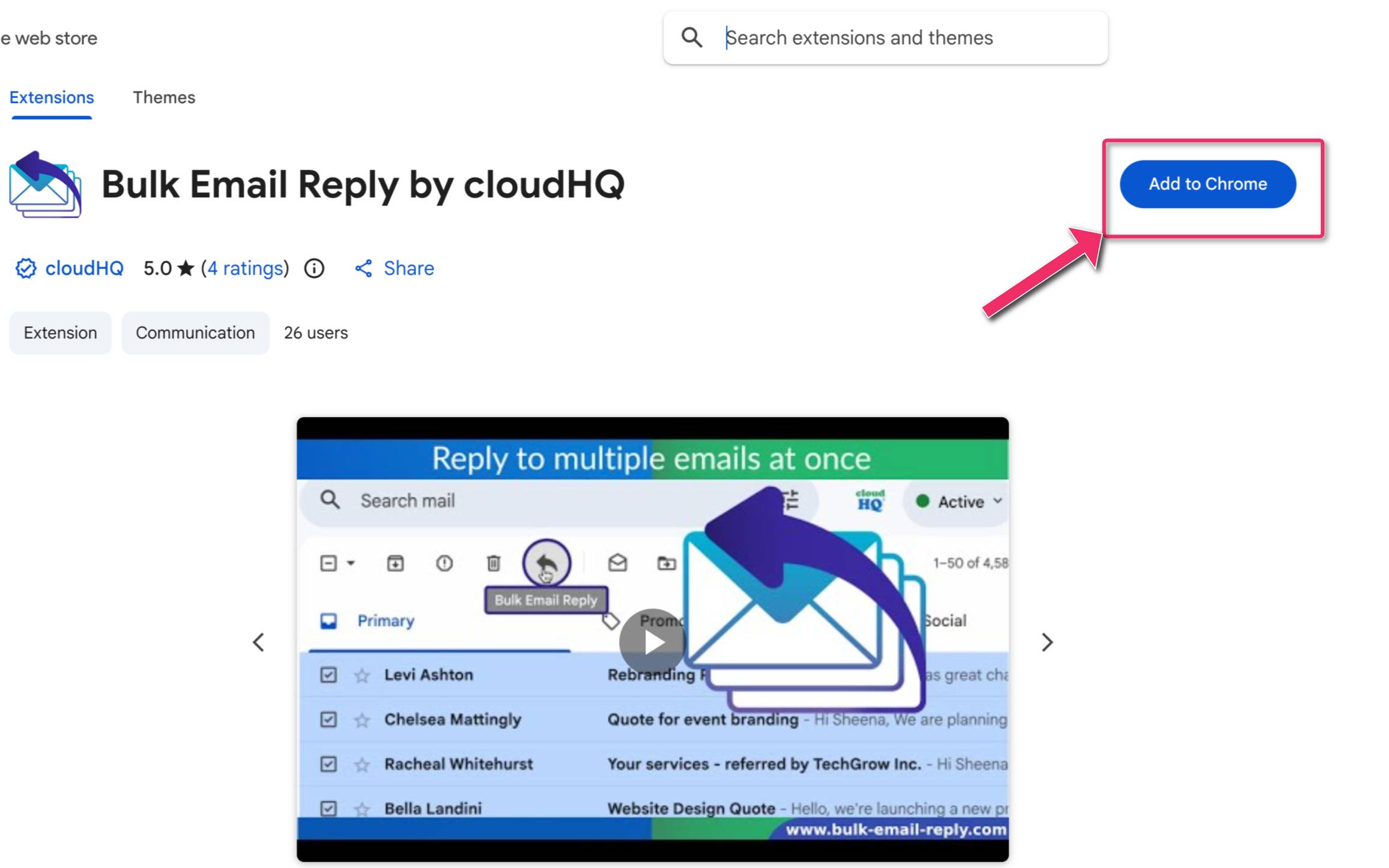 - Install the browser extension Bulk Email Reply by cloudHQ: