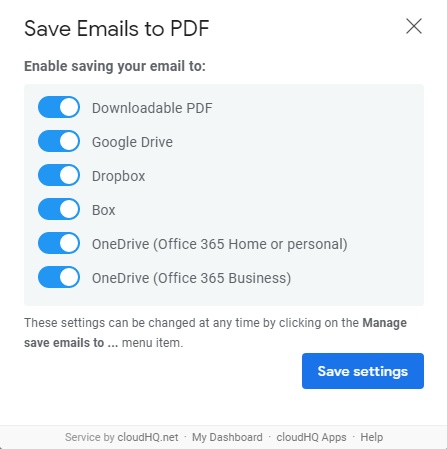 - You can configure settings where PDF’s will be saved. These settings can be changed at any time by clicking on the Manage save emails to … menu item. You can save your email to