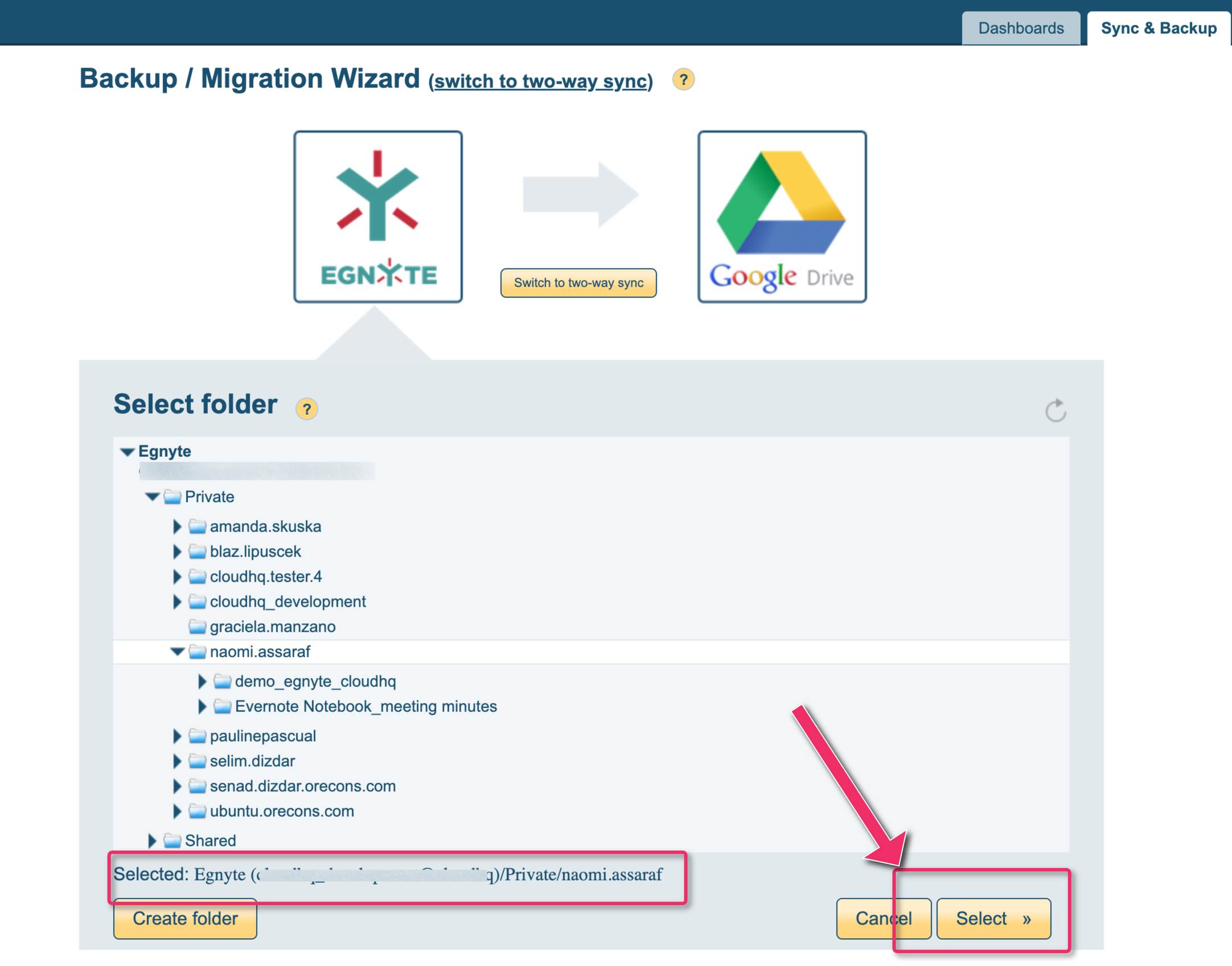 Here is how to create sync pairs to migrate Egnyte private folders to corresponding Google Workspace Drive accounts.
