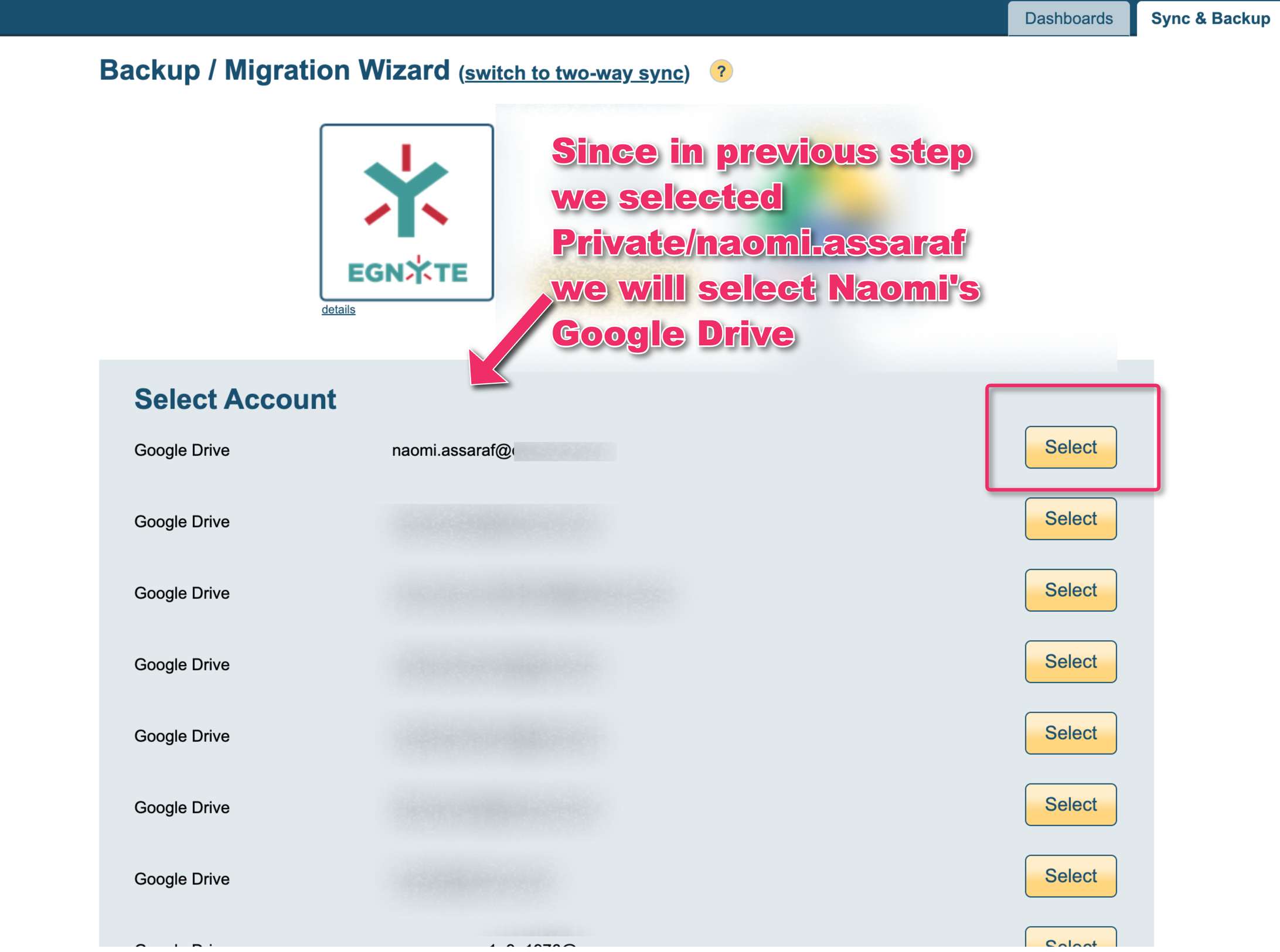 - Select I’d like to backup (replicate) Egnyte into root folder of Google Drive account: