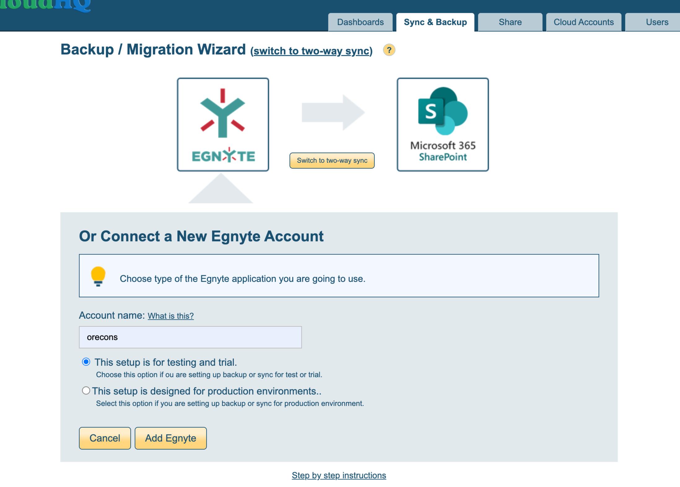 - Go to https://www.cloudhq.net/backup/egnyte/sharepoint.