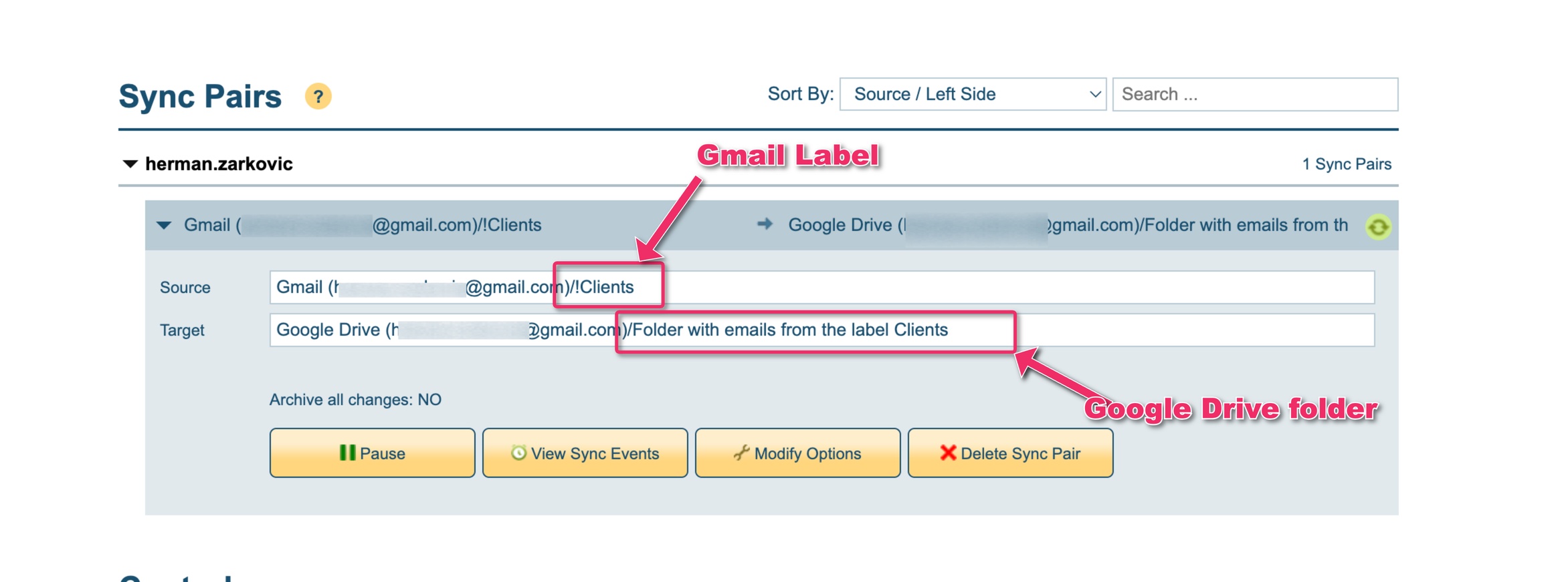 - If you don’t see the sync pair setup, it means the setup was not created. To create a setup to automatically save emails from a label, follow these steps: How to save all emails in a label (and sublabels) to Google Drive using the cloudHQ Wizard