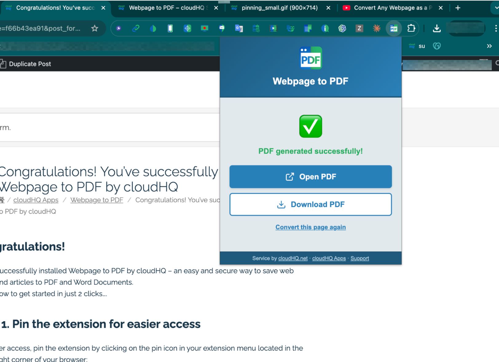 You’ve successfully installed Webpage to PDF by cloudHQ from the Chrome Web Store – an easy and secure way to save web pages and articles to PDF and Word Documents.